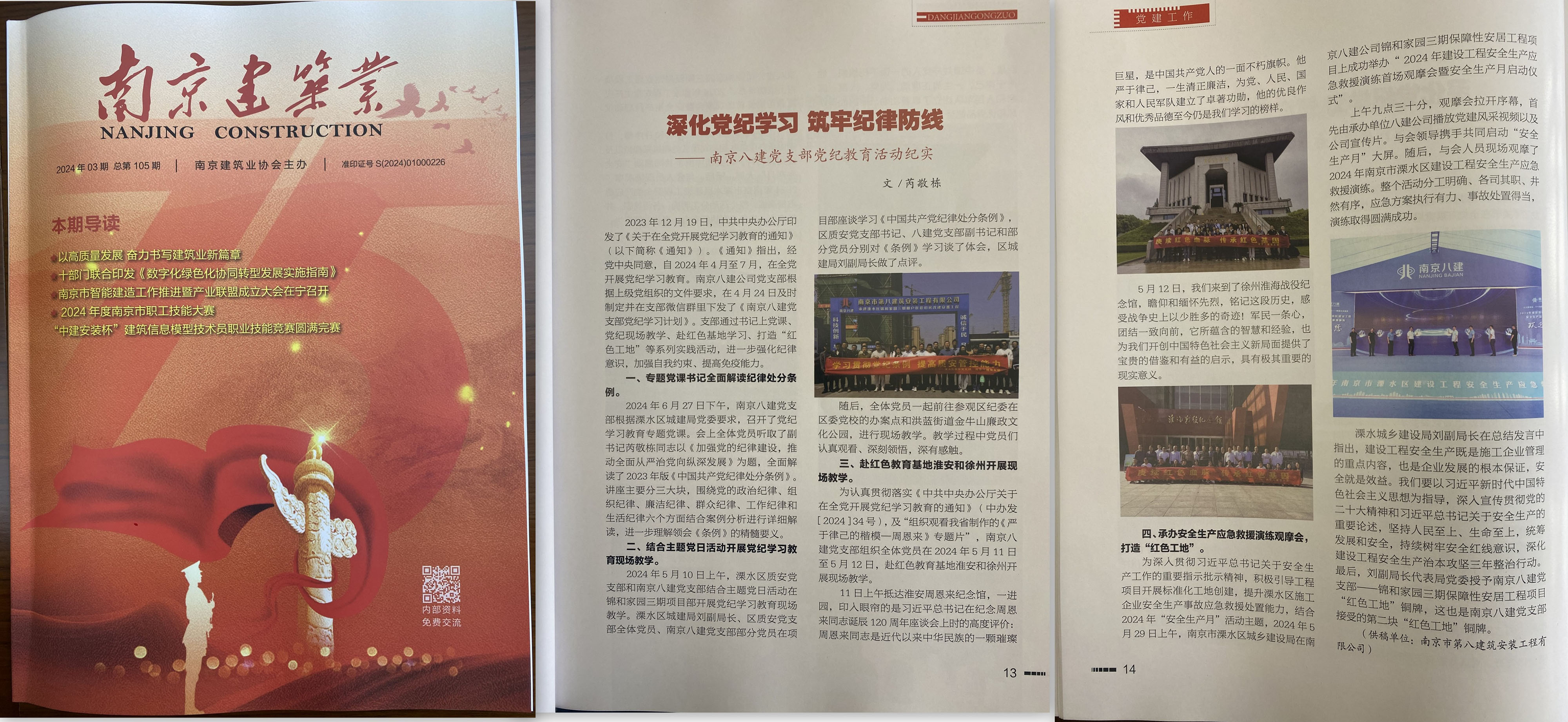 2024年9月,南京建筑業(yè)協(xié)會(huì)主辦的《南京建筑業(yè)》(第105期)刊登了芮敬棟同志《深化黨紀(jì)學(xué)習(xí) 筑牢紀(jì)律防線——南京八建黨支部黨紀(jì)教育活動(dòng)紀(jì)實(shí)》一文 -